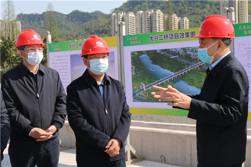 3月19日,副省長楊洪波一行赴雅安市調(diào)研重點項目推進工作,調(diào)研大興二橋項目建設(shè)情況,市委書記蘭開馳,副市長張橋陪同調(diào)研。