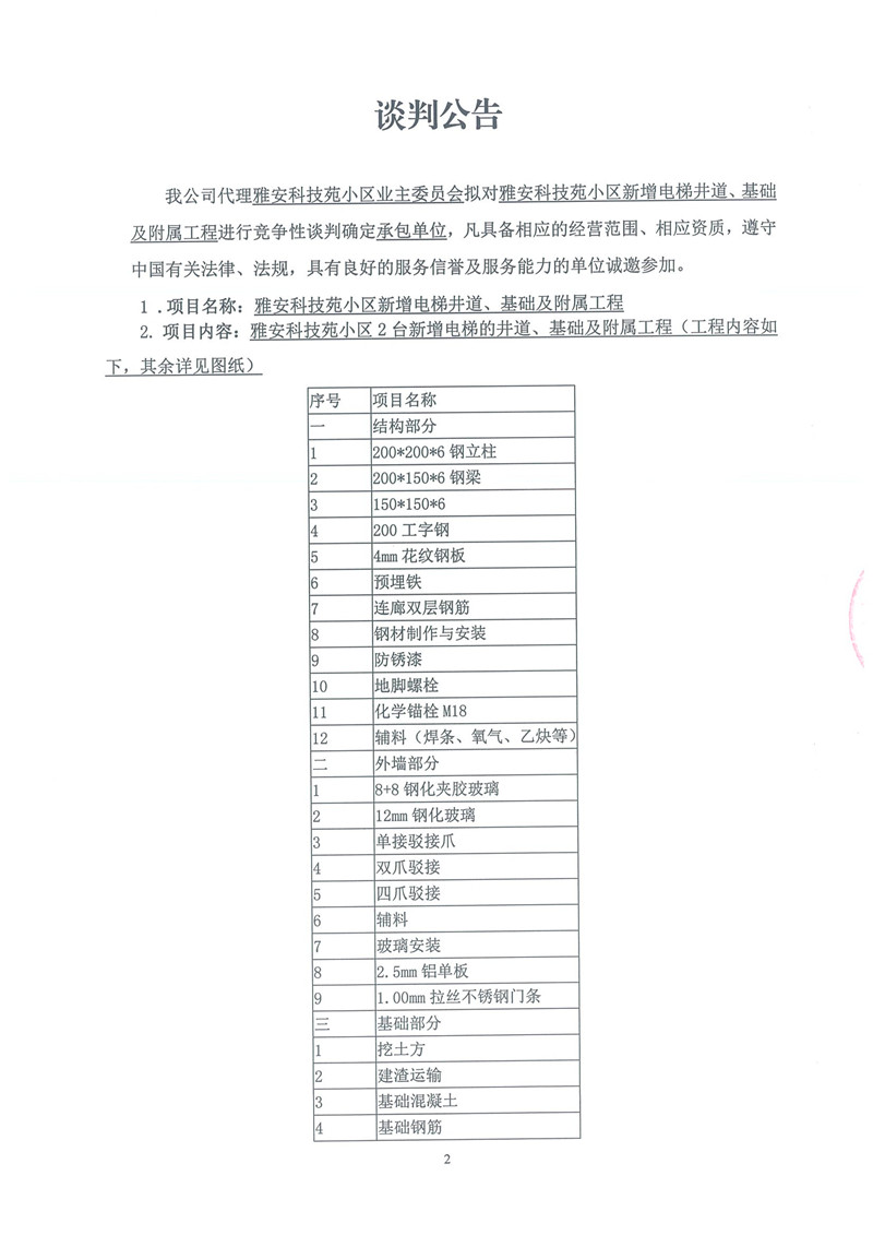 雅安科技苑小區(qū)新增電梯井道、基礎及附屬工程——競爭性談判