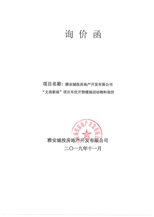 雅安城投房地產(chǎn)開發(fā)有限公司詢價函