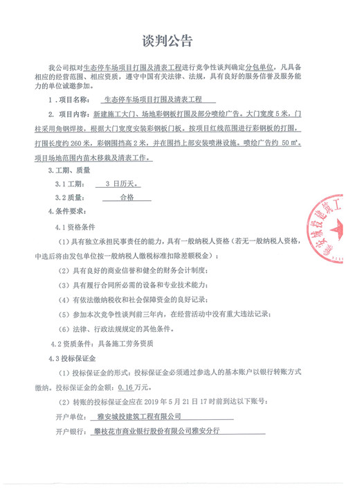 生態(tài)停車場項目打圍及清表工程競爭性談判公告
