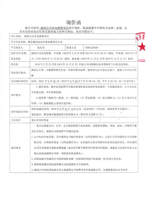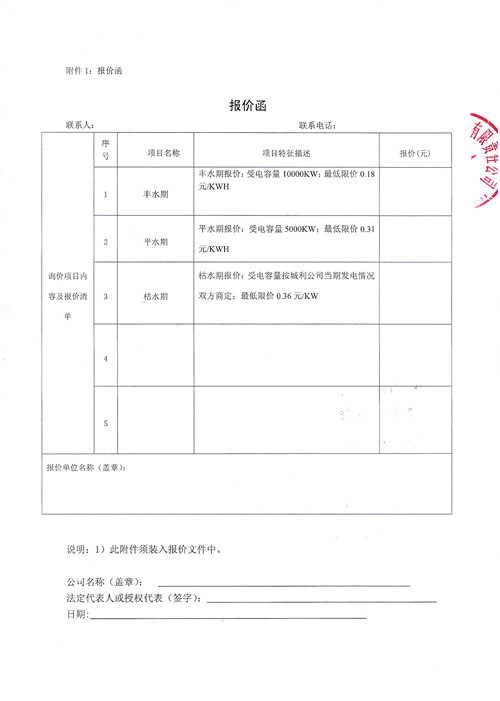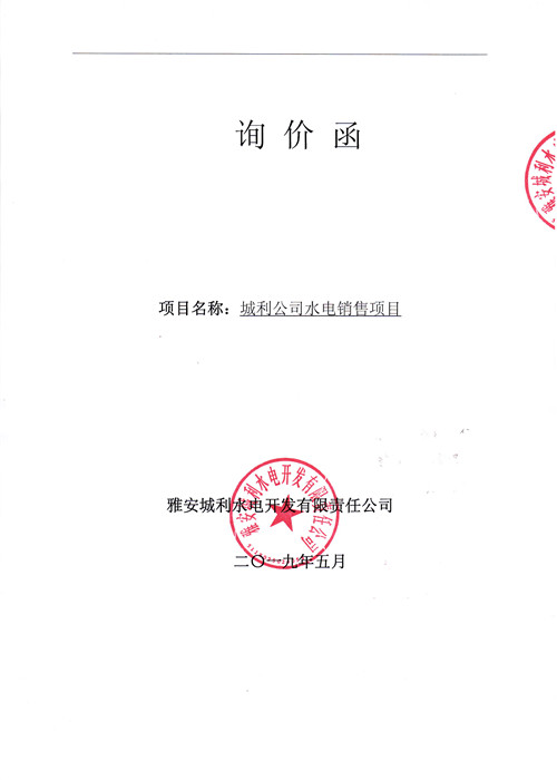 城利公司水電銷(xiāo)售項(xiàng)目詢價(jià)函