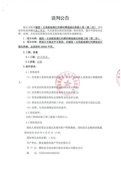 城投·文曲新座濆江河灘地綠化種植工程競爭性談判公告(第二次)