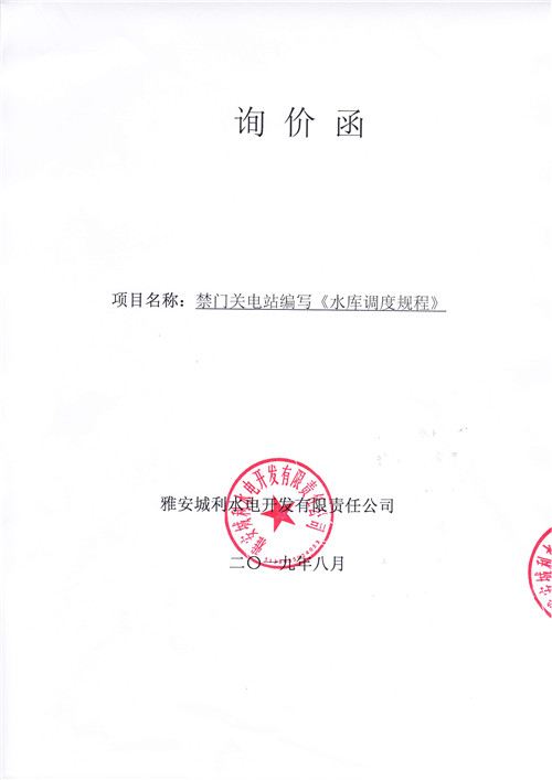 雅安城利水電開發(fā)有限責任公司禁門關電站編寫《水庫調(diào)度規(guī)程》競爭性談判公告
