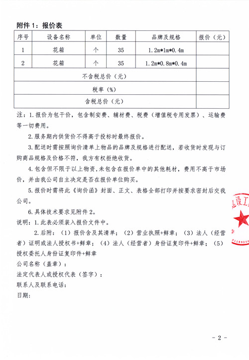 城投公司新辦公樓花箱詢價(jià)函