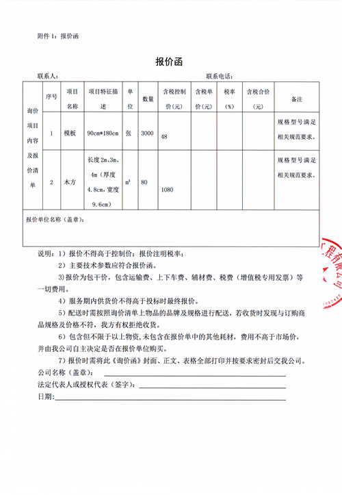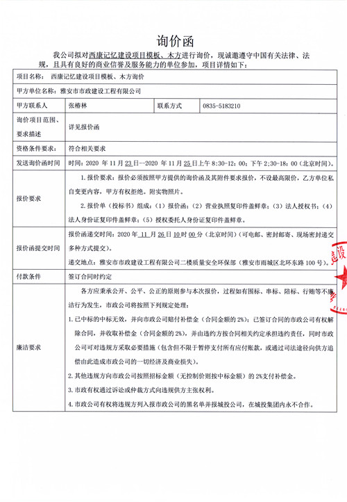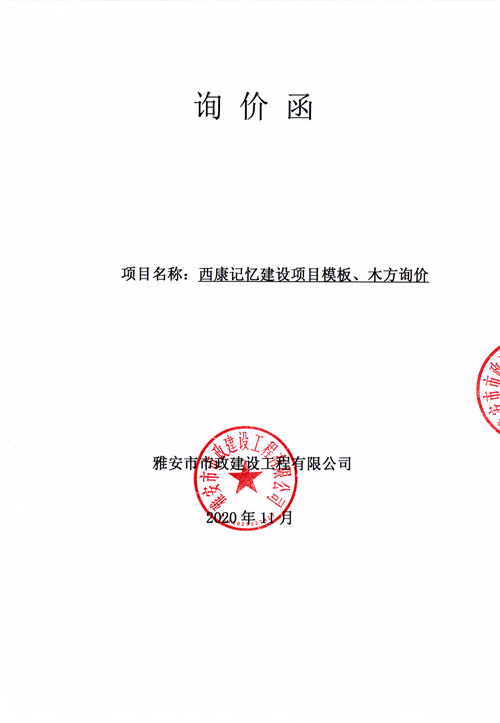 市政公司西康記憶建設(shè)項(xiàng)目模板、木方詢價函
