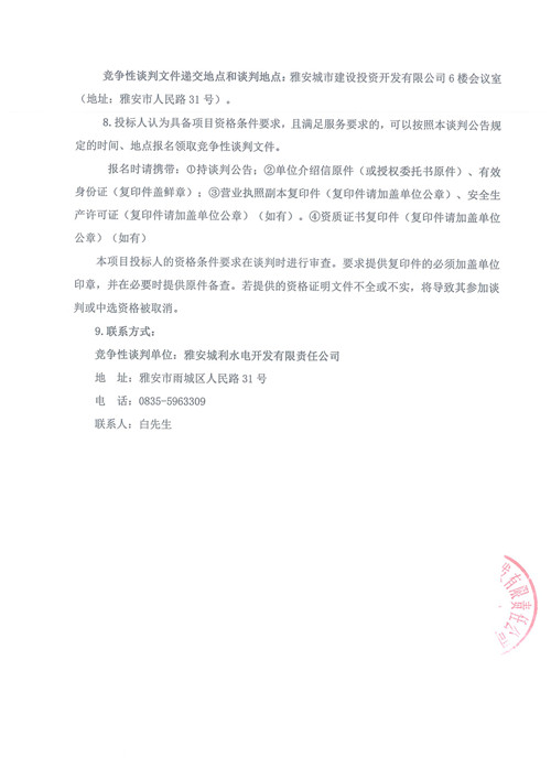 滎經(jīng)縣門坎石電站大壩修復工程競爭性談判公告