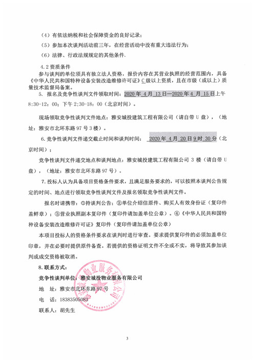 城投物業(yè)公司大興公租房小區(qū)電梯維保服務項目競爭性談判公告(第二次)