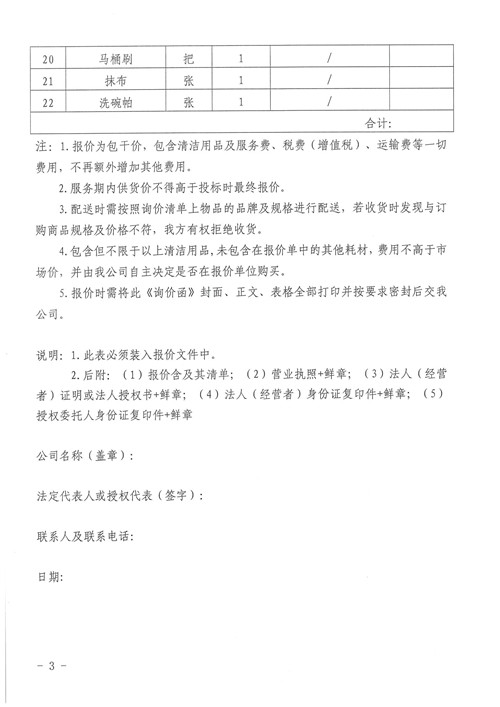 清潔用品詢價(jià)函