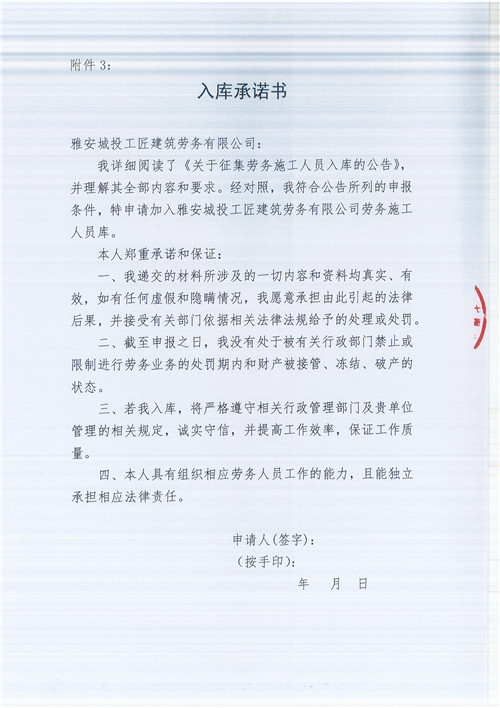雅安城投工匠建筑勞務有限公司關于征集勞務施工人員入庫的公告
