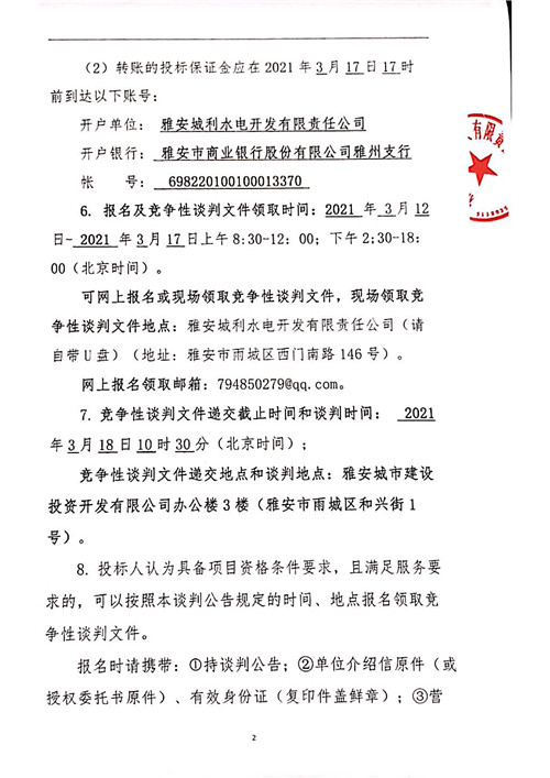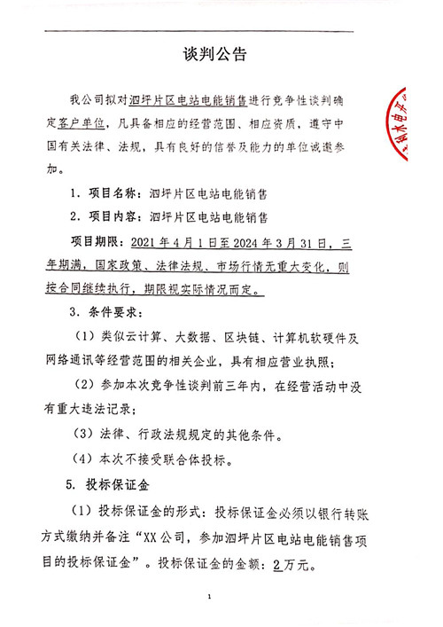 城利水電公司泗坪片區(qū)電站電能銷售競(jìng)爭(zhēng)性談判公告