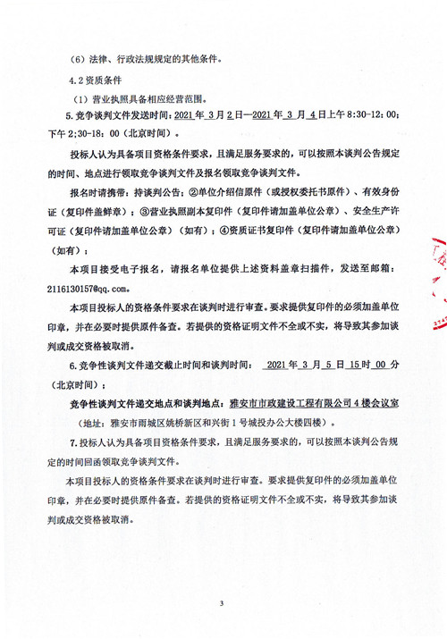 市政公司雨城大道一、二標段透水磚采購競爭性談判公告