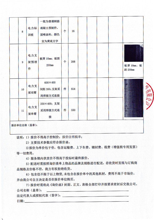 雅安市政公司大興南外環(huán)至新區(qū)大道三段電力溝工程項目電力排管、檢查井、接地等材料詢價函詢價