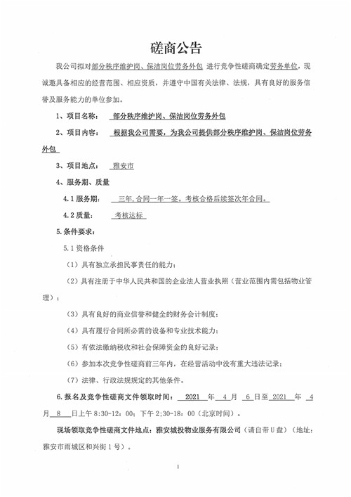 城投物業(yè)公司部分秩序維護(hù)崗、保潔崗位勞務(wù)外包競(jìng)爭(zhēng)性磋商公告