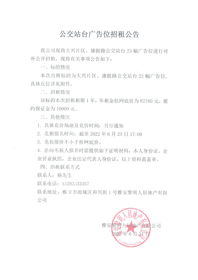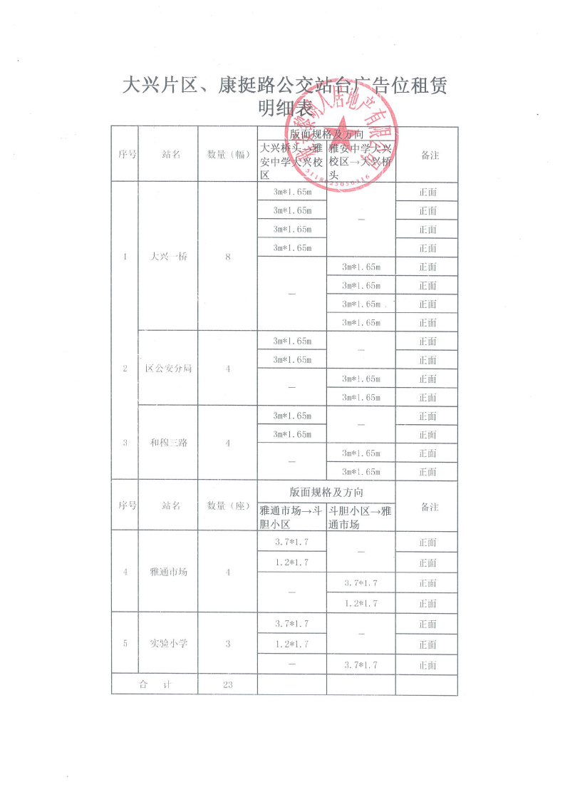 大興片區(qū)、康挺路23幅公交站臺(tái)廣告招租公告
