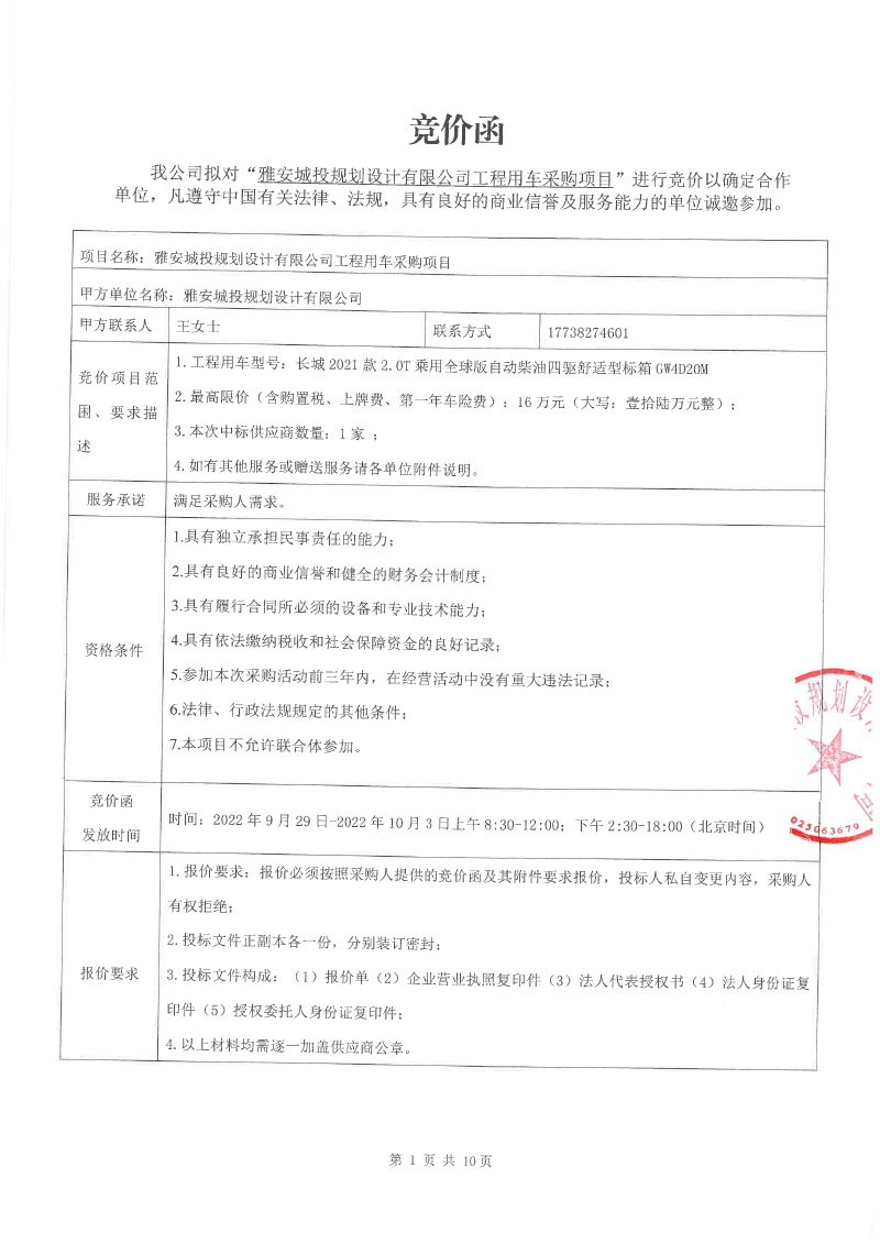雅安城投規(guī)劃設(shè)計(jì)有限公司工程用車采購項(xiàng)目競價公告