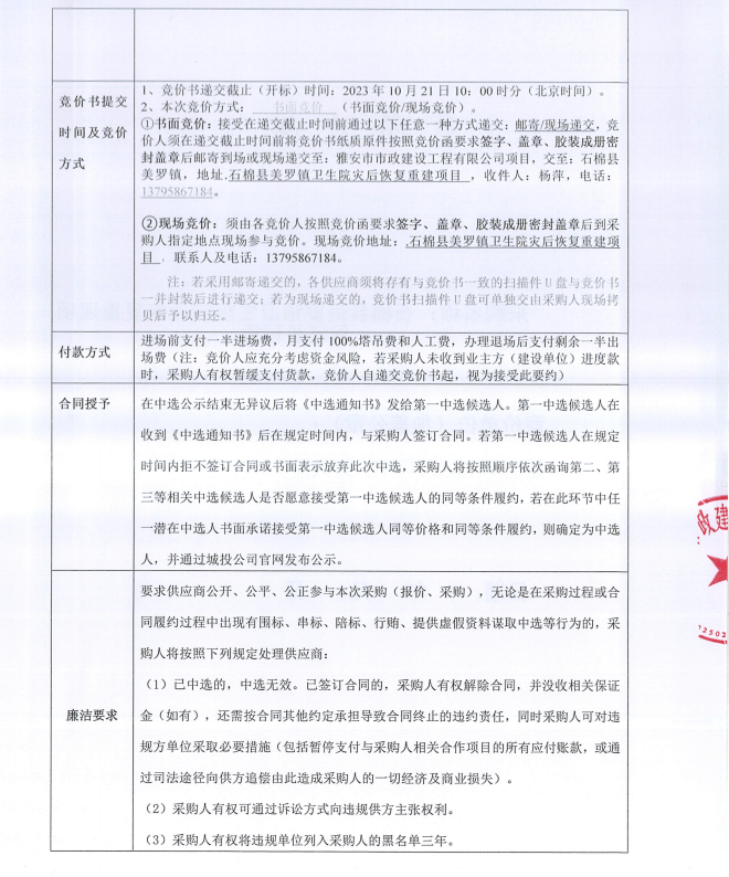 石棉縣美羅鎮(zhèn)衛(wèi)生院災后恢復重建項目塔機租賃采購競價公告