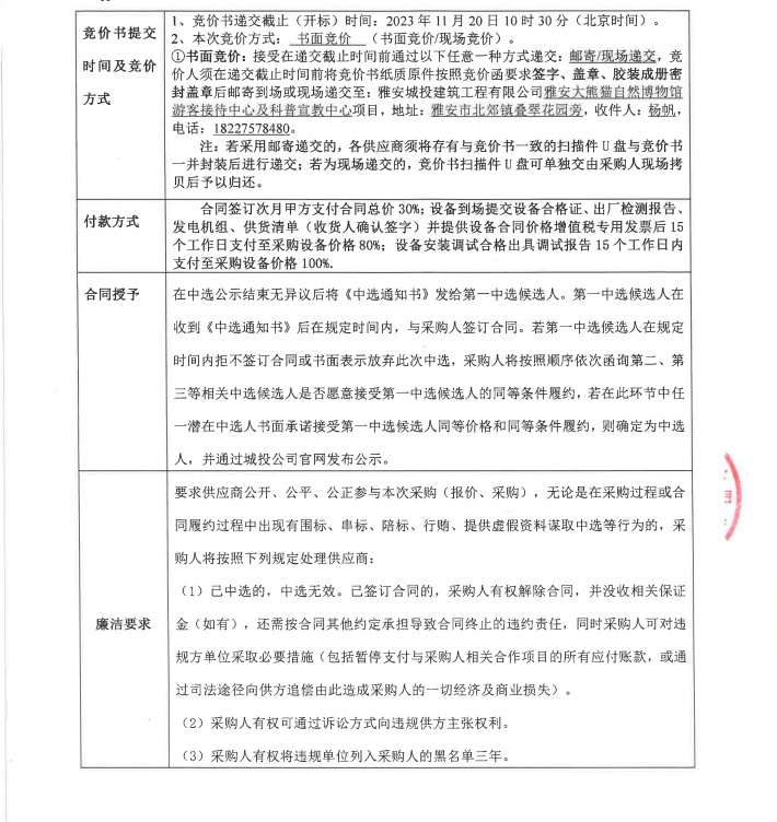 雅安大熊貓自然博物館游客接待中心及科普宣教中心項目柴油發(fā)電機組采購競價公告