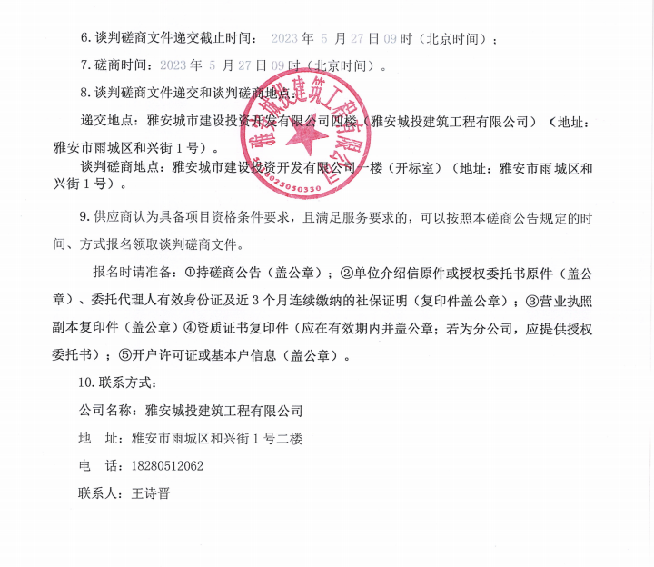 雅安市隴西河(青鼻山段)生態(tài)修復(fù)治理工程(一期)項(xiàng)目石材欄桿制作安裝工程以及雅安市西康記憶生態(tài)文旅街區(qū)項(xiàng)目一號(hào)地塊樓梯石材談判磋商公告