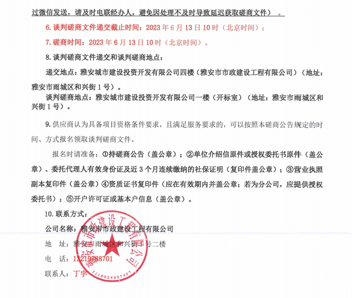 雅安文教新城體育產(chǎn)業(yè)制造園基礎(chǔ)設(shè)施及配套工程建設(shè)項目一標(biāo)段入園道路工程項目給水材料采購談判磋商公告