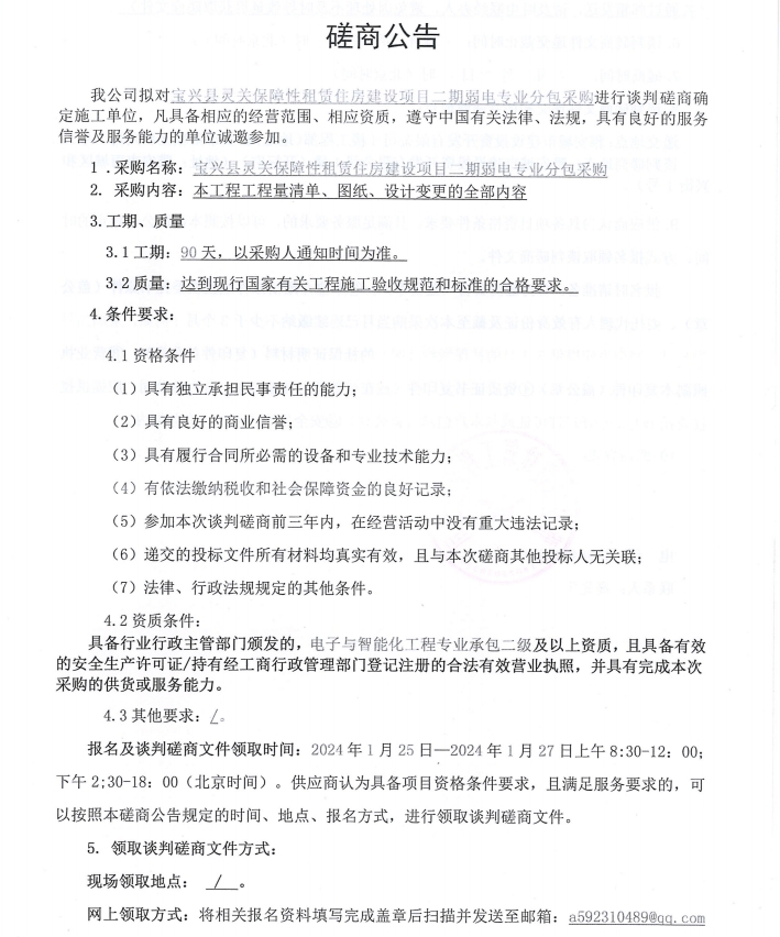 寶興縣靈關鎮(zhèn)保障性住房建設項目二期弱電專業(yè)分包采購磋商公告