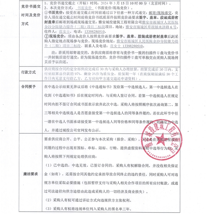 雅安市雨城區(qū)人民醫(yī)院金沙分院能力提升(二期)項目二標段定制花箱采購競價公告