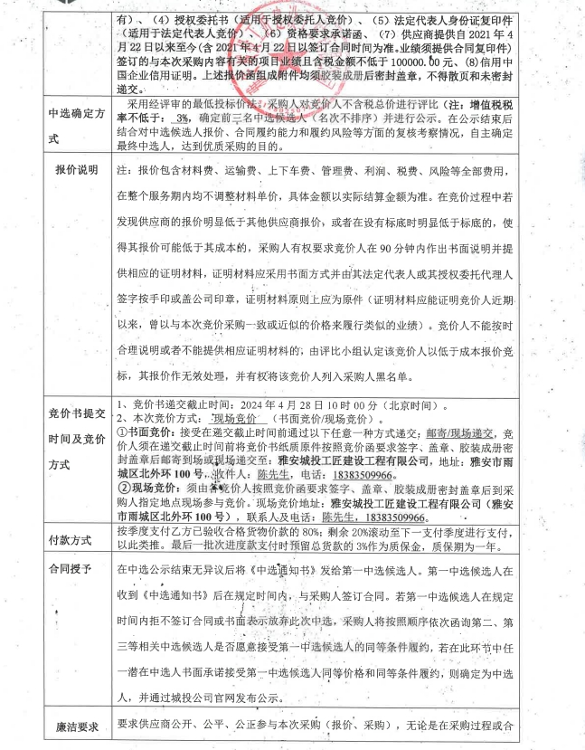 雅安市大興生態(tài)旅游建設(shè)項(xiàng)目雅樂匯、樂智屋、鴿子花藝術(shù)廳、能量站公共衛(wèi)浴材料采購(gòu)(第二次)競(jìng)價(jià)公告