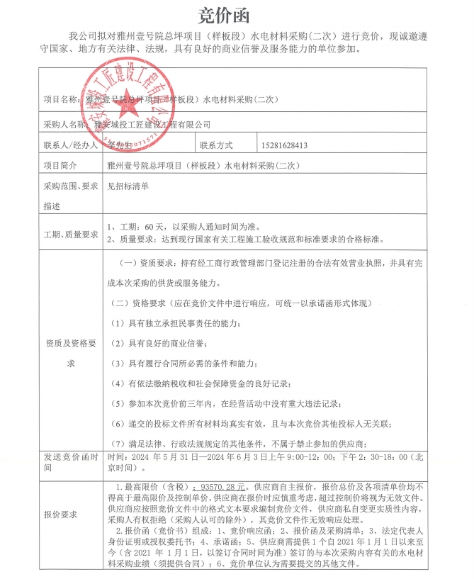 附件:競價(jià)函-雅州壹號院總坪項(xiàng)目(樣板段)水電材料采購