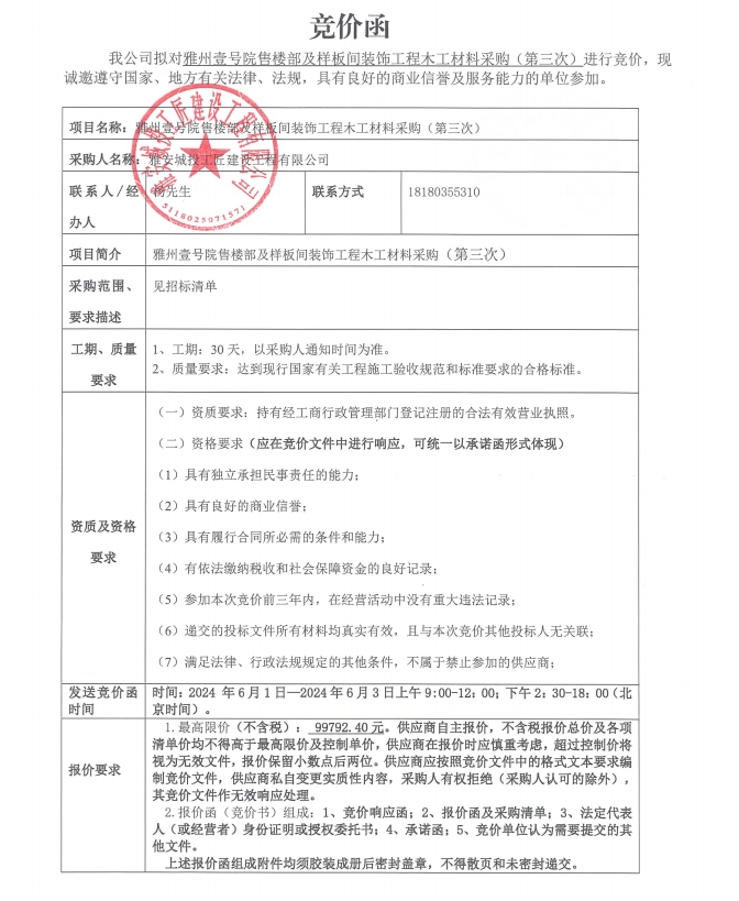附件:競(jìng)價(jià)函-木工材料采購(gòu)-雅州壹號(hào)院售樓部及樣板間(第三次)