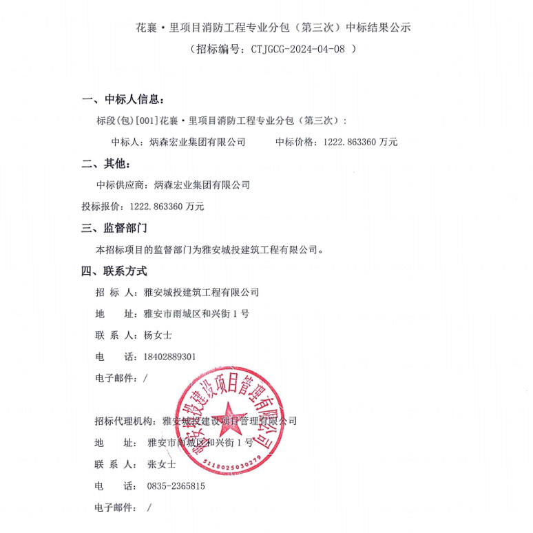 花襄·里項目消防工程專業(yè)分包(第三次)中標(biāo)結(jié)果公示
