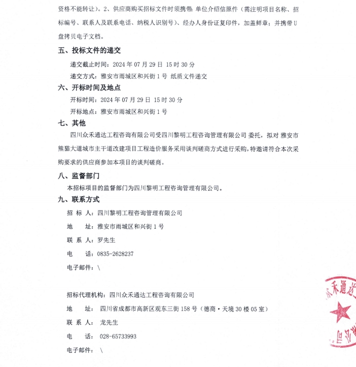 雅安市熊貓大道城市主干道改建項目工程造價服務(wù)公告