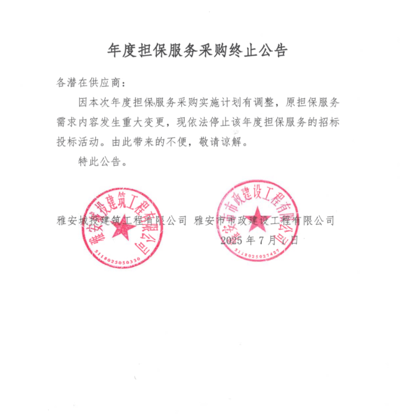 年度擔保服務(wù)采購終止公告